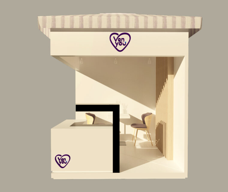 This baby shower setup showcases a soft, modern elegance brought to life through a 3D design approach. The use of neutral tones, delicate lighting, and sculptural backdrops creates a serene atmosphere perfect for celebrating a new arrival. The flowing balloon arrangements and layered panels add depth and dimension, making the scene both photogenic and immersive.